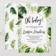 Traiga la belleza de los trópicos a su celebración con esta invitación tropical de Baby Shower. Diseñado con un ambiente fresco y neutro desde el punto de vista del género, este hotel ofrece elegantes hojas tropicales verdes y un brillante borde dorado, que equilibran perfectamente el encanto natural con un toque de glam. Ideal para el jardín, el verano o las duchas infantiles de inspiración insular, esta invitación tropical es una forma fresca y festiva de invitar a sus seres queridos a celebrar. BBS194