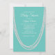Invitación Baby Shower turquesa y perlas invita al blanco