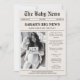 Haz una declaración audaz y memorable con una invitación a la ducha de bebé "Periódico único". Diseñada para parecerse a un diseño de periódico clásico, esta invitación creativa incluye tu foto favorita de la futura madre junto con titulares juguetones y detalles de la próxima celebración. El diseño de estilo periodístico añaden un toque divertido y original, mientras que la tipografía moderna y los toques de temática infantil lo convierten en el lugar perfecto para una ducha de bebé. Esta invitación única no sólo destacará sino que también marcará el tono para un evento memorable y emocionante.