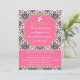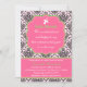 © Socialite Designs. Elementos de diseño rosa y verde para tu texto y una damasco negro, sobre un fondo rosa claro, invitación a la ducha de bebé. Personalizar el texto a su elección de color.