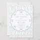 Cintas azules y fondo de vegetación floral mixto con marco de vieiras dulces y arcos azules rodeando fuentes dulces finas con los detalles del evento. Una invitación perfecta para un evento perfecto. Estilo neutro de género. 100% de satisfacción del cliente en Zazzle cada día.