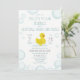 La burbuja con el tema del distanciamiento social la ducha virtual neutra de bebé por invitación de correo con el pato amarillo de goma en el centro.