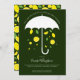 Una invitación virtual a la ducha de bebé con un paraguas blanco que está mostrando limones sonrientes y hojas verdes sobre un fondo verde. Esta encantadora invitación tiene un toque de elegancia sin ser demasiado seria, lo que le deja mucho espacio para divertirse. Simplemente personalizar las palabras, añade esta invitación a tu carrito, y ten una maravillosa ducha bebé.