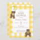 Invitación Baby Shower Yellow and White Plaid Teddy Bears