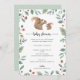 La invitación incluye el ilustracion acuarela de una ardilla para bebés y su madre, rodeada por un marco follaje verde y los detalles de su fiesta con un estilo moderno. La invitación a la ducha de bebé se puede personalizar fácilmente para tu evento añadiendo los detalles del evento, el estilo de fuente, el tamaño y el color del tipo de letra y la redacción de tu elección haciendo clic en el botón "Personalizar esta plantilla". Personalizar este diseño aún más haciendo clic en 'Editar usando la herramienta de diseño'