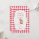 This charming invitation is perfect for celebrating a baby's first birthday! The design features a sweet cherry motif on a classic red gingham pattern, creating a delightful and festive look for your child's special day. It's a delightful way to invite family and friends to share in the joy of this milestone event.
