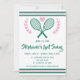 Pasa a la cancha del estilo y la diversión con nuestra Invitación de fin de semana del Last Swing Retro Tennis Country Club Bachelorette! Transfiera su fiesta nupcial a la vibrante era de los 80 con un juguetón diseño rosa y verde con raquetas de tenis, exuberante mezcla de elegancia deportiva y encanto retro. Reúne a su equipo para un fin de semana estrepitoso lleno de risas, amor y recuerdos que harán que su corazón racquee. ¡personalizar los detalles y deja que comiencen los juegos!