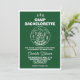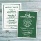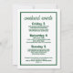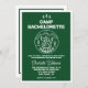 Invitación a una fiesta de soltería en el campo verde y blanco. La parte posterior se puede personalizar con los eventos de fin de semana o el itinerario para una playa de destino, la información de RSVP y los detalles del registro.