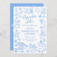 Celebra el amor y los nuevos inicios con nuestra encantadora invitación de fin de semana de bachillerato "Après Ski" con ilustraciones de color azul pastel, con temática invernal y dibujados a mano.