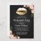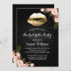 Invitación Bachelorette Party Gold Lips Damask Rubor Floral