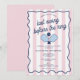 A colorful hand drawn pickleball bachelorette party pink and blue theme design. A beautiful design perfect for Bachelorette weekend parties. This Bachelorette Party invitation includes your custom text and different color choices. A retro modern vintage blue, pink and white striped Bachelorette weekend invitation.
