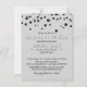 Moda negra y gris con falsos Relieves metalizados de plata de confeti de bachillerato invitaciones de fin de semana - lecturas 'Por favor, únete a nosotros' con 'Bachelorette Weekend' en la parte superior en un elegante guión con una sombra de gota. Sólido fondo gris con puntos de confeti de Relieve metalizado negro y falso plateado esparcidos por la parte superior. Personalizado con el nombre del invitado de honor. Un elegante borde de desplazamiento de efecto metálico plateado antiguo separa el nombre de los detalles generales del fiesta del fin de semana de soltera. La información personalizada del fin de semana de los chicas, incluyendo los detalles de RSVP, está impresa en letras negras modernas y coordinadas. La parte posterior tiene el borde de puntos de confeti coincidentes en la parte superior e inferior con el fondo gris. Información detallada del itinerario para cada día listo para ser personalizado. La moderna y moderna fiesta de soltera invita a los huéspedes a que se les personalizen con sus propios detalles de fin de semana. Complementa los bodas modernos y los elegantes temas de boda negro y plateado. Tenemos más invitaciones de fin de semana en nuestra tienda Zazzle.com/angela65.