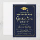 Celebrate your graduate’s big achievement with this stylish Backyard BBQ Graduation Party Invitation featuring an elegant gold and navy design with a graduation cap icon.