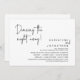 Anuncie su gusto siempre después con estilo con nuestra moderna tarjeta de invitación de fiesta de boda de diseño de guiones. Nuestra Feliz Ever Después de bailar la tarjeta de invitación de la noche es ideal para parejas que han decidido irse y quieren albergar a un fiesta para celebrar su unión. Con un diseño sofisticado pero lúdico, esta invitación seguramente marcará el tono para un evento inolvidable. La tarjeta de invitación presenta un diseño minimalista con un esquema en blanco y negro, añadiendo un toque de elegancia eterna a su celebración.