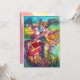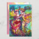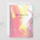 Invitación de arte fino colorida, elegante y vibrante. Bailarines románticos de carnaval: Figuras de baile artísticas, caprichosas y expresivas, hermosa mujer rubia con trajes emplumados y brillantes baila con un joven Arlequín con una rosa roja dorada en el reverso de la tarjeta. Pintura en acuarela en colores rosa brillante, fucsia, verde, rojo, azul, amarillo, con destellos de oro inspirados en la Comedia del Arte (Commedia dell'arte) y el Carnaval de Venecia. También es un hermoso diseño para anuncios de boda, programas, "save the date", aniversario, reuniones, compromisos románticos, fiesta de novia, ocasiones especiales, fiesta de vacaciones, baile de máscaras de Mardi Gras, fiestas de cumpleaños. Dulces 16, bailes de Quinceañera, celebraciones de N