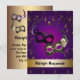 Invitación a una fiesta de máscaras con hermosas máscaras de Mardi Gras, invitaciones para baile de gala o baile de bienvenida. Esta hermosa invitación para fiesta de máscaras de oro y púrpura se personaliza fácilmente para su evento simplemente agregando sus detalles en la parte delantera y trasera en el estilo de letra, color y redacción de su elección.