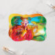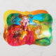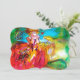 Personaje colorido, caprichoso y vibrante de máscara veneciana. Una hermosa y sofisticada mujer rubia está sentada con una rosa roja y una máscara de plumas en mano con telas doradas y fucsia brillantes de un disfraz de baile de máscaras barroco con plumas y un perro. Pintura en acuarela con colores brillantes en amarillo, azul, rosa, verde, destellos dorados y hoja de plata, inspirada en personajes de la Comedia del Arte (Commedia dell'Arte), Carnaval de Venecia y máscaras de plumas venecianas. Este diseño fresco y artístico es perfecto para bodas, ceremonias nupciales, fiestas de soltera, dulces 16, fiestas de cumpleaños de quinceañera, fiestas de disfraces de Halloween, bailes de disfraces, compromisos románticos, anuncios de "save the date", fiestas de oficina,