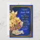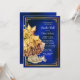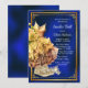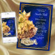 Invitación de baile de zapatillas azul real y dorado con vestido dorado y zapatillas en un hermoso fondo azul real y dorado. Puede cambiar el texto según sea necesario para su evento. Imprimir en papel brillante para obtener los mejores resultados.
