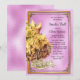 Invitación de baile de zapatillas rosa y dorado con hermoso vestido dorado y zapatillas en un hermoso fondo rosa y dorado. Puede cambiar el texto según sea necesario para su evento. Imprimir en papel brillante para obtener los mejores resultados.