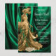Invitación de baile de zapatillas verde esmeralda y oro con hermoso vestido dorado y zapatillas en un fondo verde esmeralda precioso. Puede cambiar el texto según sea necesario para su evento. Imprimir en papel brillante para obtener los mejores resultados.