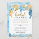 Bajo el mar, la invitación de la fiesta de despedida de soltera azul y dorada presenta caballitos de mar, estrellas de mar, conchas marinas y arrecifes de coral con caligrafía caprichosa al estilo acuarela. Para una personalización más avanzada de este diseño, haga clic en el BOTÓN DE HERRAMIENTA DE DISEÑO AZUL. También están disponibles artículos coincidentes.