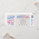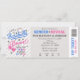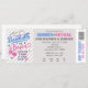 Invitación al estilo de boleto de béisbol o Bows para un fiesta de género, con un esquema de color gris neutro con brotes de rosa y azul.