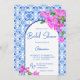 Baldosas azules y Bougainvillea elegante estilo mediterráneo griego Santorini Mykonos modelo de invitación a la ducha de novias con tema plantilla instantánea.