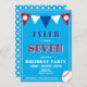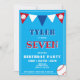 Invitación de cumpleaños para niños deportivos de béisbol Ball. Invitación a una fiesta de cumpleaños de béisbol. El diseño tiene pelotas de béisbol y banderas de racimo en tonos rojos, blancos y azules sobre un fondo azul brillante. Genial como invitación para una fiesta de cumpleaños para un chico que ama el béisbol y los deportes.