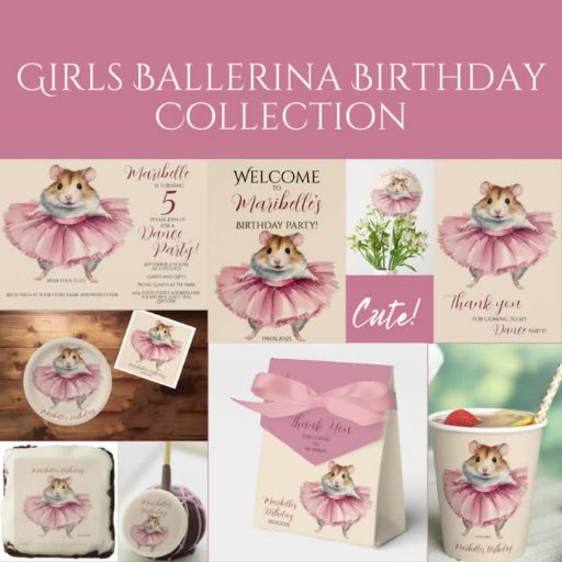 Haz especial tu cumpleaños con nuestra divertida Invitación a la fiesta de cumpleaños de Ballerina Hamster Girls. Transforme tu casa en un maravilloso país ballet para el cumpleaños de tu pequeña niña. Descubra una amplia gama de decoraciones temáticas de bailarina de My Baby Boutique que harán que su día sea inolvidable. Hay mucho espacio para personalizar con todos los detalles de tu fiesta. ¡No te olvides de llevar tu tutu y prepárate para bailar!