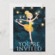 Este impresionante diseño de ballet presenta la bailarina rubia más fina con un tutu amarillo bailando sobre "Estás invitado" de la palabra frente a un fondo azul profundo con bonitas luces de cuerda. Personalizar con facilidad con la información de su fiesta!