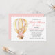 Watercolor Pink Hot Air Balloon Teddy Bear con Pink Bow Baby Shower por invitación de correo. Texto rosado.