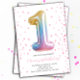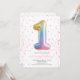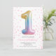 Personalizar de número de Fiesta del primer cumpleaños de Rainbow Balloon con el texto usando el botón Editar para personalizar sus invitaciones.