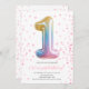 Invitación Balón arcoiris Primer número de Fiesta Chica de cu