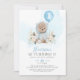 Invitación Balón azul Boho Teddy Bear Primer cumpleaños