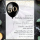 Invitación Balón blanco negro y dorado satén 50 cumpleaños