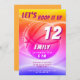 Ball de baloncesto Hoop it up Sports Birthday Invitation. Este diseño moderno tiene el texto "Vamos a colgarlo" y una pelota de baloncesto en un fondo colorido vivo y vibrante. La temática del baloncesto es perfecta para los cumpleaños de los aficionados al baloncesto.