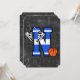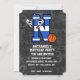 Divertido diseño de baloncesto para el joven jugador de baloncesto sobre hielo o fanático del baloncesto. Destaca la letra N en colores de equipo azul y blanco con zapatillas de baloncesto y baloncesto. El fondo presenta diseño de pizarra con términos e imágenes de baloncesto
