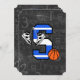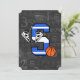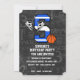 Divertido diseño de baloncesto para el joven jugador de baloncesto o fanático del baloncesto. Destaca la letra S en colores de equipo azul y blanco con zapatillas de baloncesto y baloncesto. El fondo presenta diseño de pizarra con términos y imágenes de baloncesto