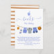Baloncesto Clothesline Bebé ducha Libros para tarjetas de bebé para un niño. Presenta jersey de baloncesto acuarela, zapatos, camiseta de árbitro y un baloncesto en telas de colores azul y marrón. Se puede cambiar toda la redacción, a cualquier cumpleaños de edad o a una ducha de bebé. Para realizar más cambios, vaya a Personalizar esta plantilla. En la parte inferior verás "¿Quieres personalizar este diseño aún más? Haga clic en la herramienta EDIT using Design. A partir de ahí puede cambiar algunas fuentes y algunos colores, mover cosas o borrar lo que necesita.