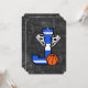 Divertido diseño de baloncesto para el joven jugador de baloncesto sobre hielo o fanático del baloncesto. Destaca la letra J en colores de equipo azul y blanco con zapatillas de baloncesto y baloncesto. El fondo presenta un diseño de pizarra con términos y imágenes de baloncesto