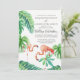 Invitación Banana Leaf Watercolor Pink Flamingo Beach Art