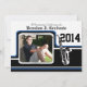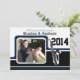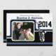 Banda de Varsity con invitación a la fiesta de graduación de Trumpet con foto acentuada en azul. Personalizar para cualquier graduación universitaria, universitaria o de secundaria. Cambie el texto para que se ajuste a sus necesidades. Añadir información a la parte posterior de la invitación también.