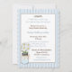 Un país azul (hexadecimal #AFCADD) con fondo de rayas blancas y texto marrón. Personalice todos los colores. Frasco de albañil vintage con flores blancas. Este tema del país "Invitación Baby Shower" hace una maravillosa ducha de bebé, para dar la bienvenida a un niño pequeño a nuestro mundo. "Un niño pequeño está en camino, celebremos antes del gran día" Añade otros productos de coordinación- Por favor visite mi tienda La Princesa Hungaricana en www.zazzle.com/hungaricanprincess*. Mira mi colección de Baby Shower azul y marrón. Congratulations.