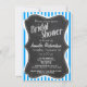 Te encantará este bonito y elegante diseño de pizarra vintage con franjas verticales en el cielo azul profundo; diseño de patrones a rayas. Le invitamos a nuestra tienda, Bridal Shower Shop, para ver este fresco diseño retro de pizarra en muchos más productos de personalizable, incluyendo botones de novia, sellos modernos de boda y invitaciones a la moda de la tiza Bridal Shower. Gracias!