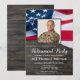 Invitaciones de Jubilación Militar de la Bandera Americana - Celebre años de servicio dedicado, e invite a amigos y familiares a su fiesta de jubilación militar con esta Invitación de Jubilación con Bandera Americana - diseño de bandera americana de EE. UU. en madera rústica. Esta invitación de jubilación militar también es perfecta para invitaciones de graduación militar, invitación de jubilación de policía, cambiar el lugar en la personalización. Vea nuestra colección para regalos de jubilación militar, regalos de graduación, favores de fiesta y suministros coincidentes. DERECHOS DE AUTOR © 2021 Judy Burrows, Black Dog Art - Todos los derechos reservados. Invitación de la Bandera Americana de Jubilación Militar con Foto Personalizada