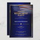Gloriosa bandera americana ondeando sobre un fondo azul oscuro. Una elegante plantilla de fiesta de jubilación que es fácil de editar. Este elegante diseño es adecuado para veteranos, militares, policías, trabajos relacionados con el gobierno o trabajos relacionados con el patriotismo.