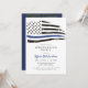 Esta invitación para una fiesta de graduación presenta una bandera de la delgada línea azul de acuarela desgastada y un diseño neutral simple. Esta invitación se puede utilizar para celebrar a los primeros respondedores de la policía, así como al personal de la marina o la fuerza aérea.