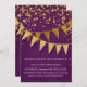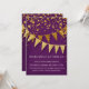 Elegante. Moderno. Con estilo. Glamour discreto con banderas de banderines brillantes en dos tonos de brillo dorado con confeti que cae centelleante y brillante en varios tamaños y tonos de dorado. Un estallido de estrellas brillantes resalta el brillo. Una composición de texto tipográfico muy contemporánea que no es en absoluto tradicional. Es simple y breve. Les dice a sus invitados: "¡Vamos a dar una fiesta y será la fiesta de la vida!". Para la novia y el novio elegantes pero no tradicionales. COLORES: violeta púrpura oscuro profundo y dorado, brillos dorados. Especialmente adecuado para bodas de otoño o invierno, fiestas de Nochevieja, fiestas de cumpleaños y anuncios de fiestas de aniversario.