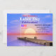 Invitación a la fiesta de fin de verano del Día del Trabajo con puesta de sol y pontón y bandera estadounidense. Cambie el texto de ejemplo a su propia dirección, etc. para que se adapte a su evento.