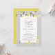 La celebración de la fiesta de bebé para parejas de género neutral con diseño de celebración amarillo y gris presenta caligrafía y escritura modernas en gris dispuestas en un borde divertido rodeado de banderas y confeti coordinados. En la parte inferior del diseño, encontrarás más confeti junto con un biberón, un pato de goma, un chupete y alfileres para pañales. Para obtener los mejores resultados, sigue las instrucciones del modelo y el espaciado al ingresar tus datos. La parte trasera de la tarjeta tiene un patrón de lunares grises sobre un fondo amarillo iluminado y coincide con una de las banderas en el estandarte. Envía un correo electrónico a invitationsuites@gmail.com con preguntas o solicitudes personalizadas.